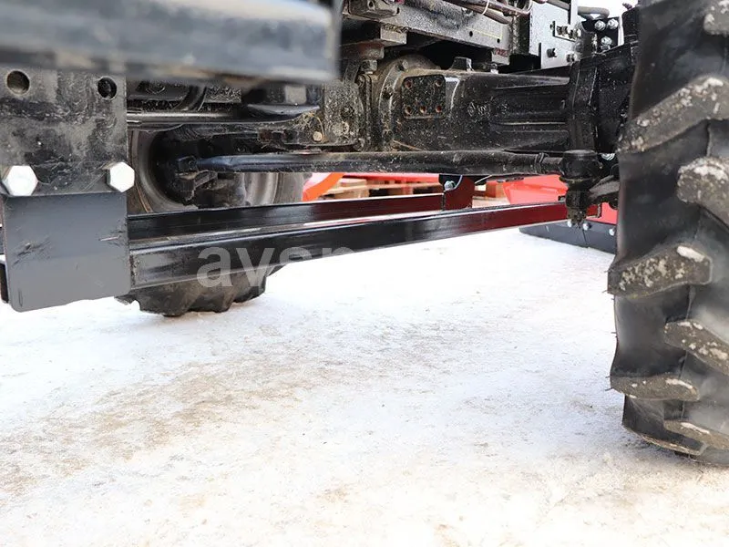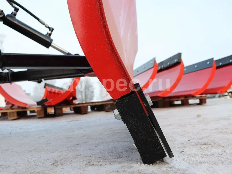 Ширина лопаты (отвала) составляет 2 метра, а высота - 750 мм. Угол поворота отвала составляет 30/30 градусов и производится гидравлическим способом, что позволяет эффективно очищать проезжую часть от снега и мусора. Резиновые технические пластины размером 500х40х125 мм обеспечивают более качественную уборку и защиту дорожного покрытия. Вес отвала - 130 кг. Он легко крепится на раму трактора спереди и может использоваться совместно с погрузчиком, не мешая его установке.